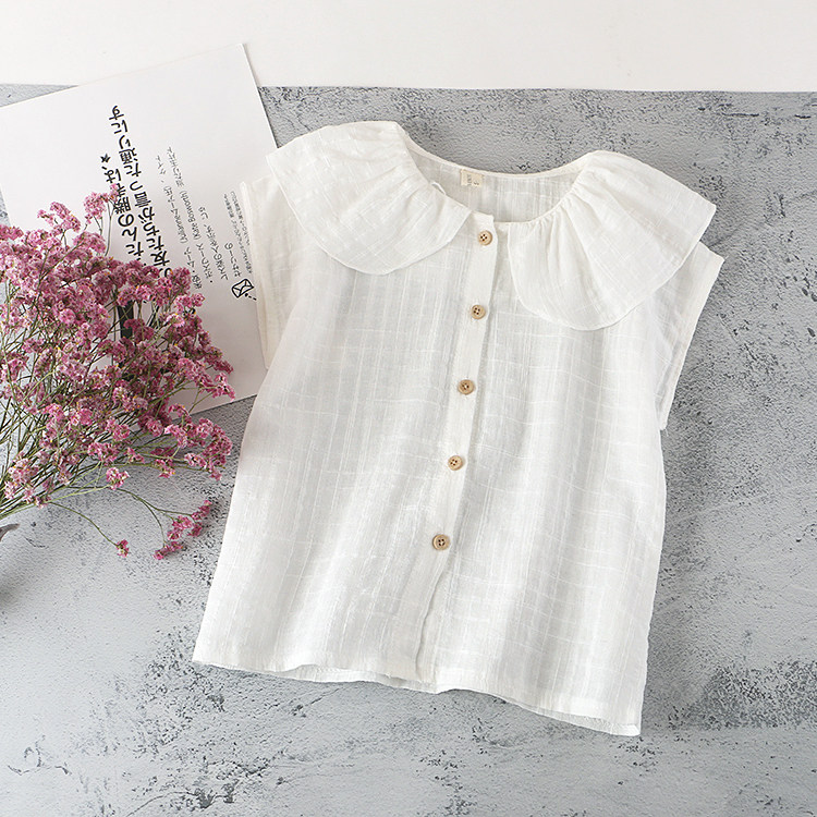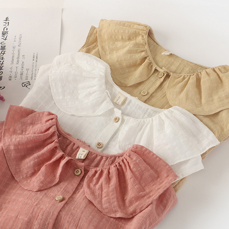 Girl cotton shirt summer new child baby baby baby lobe doll tie aero princess Han Edition tops