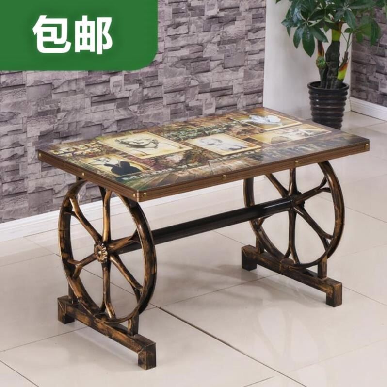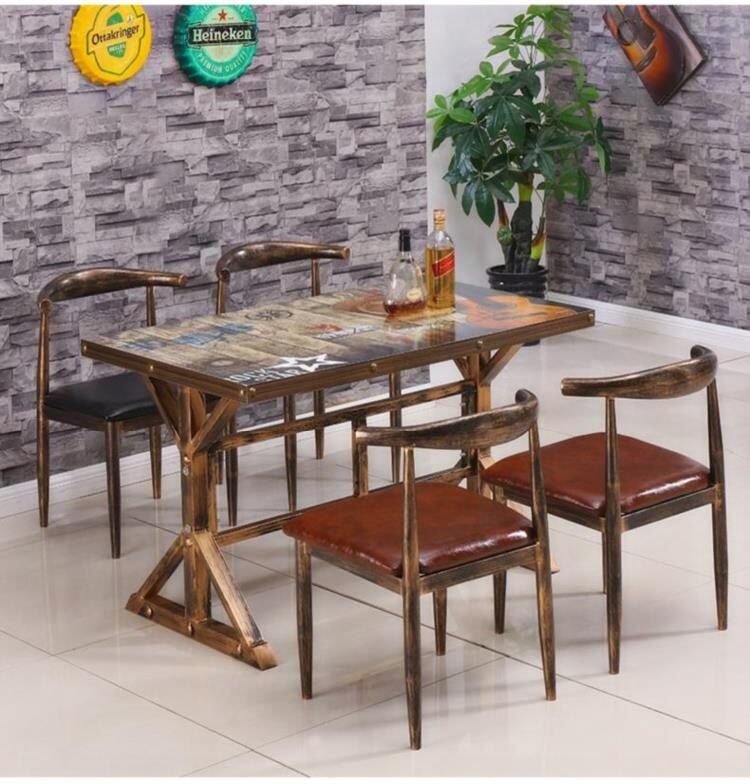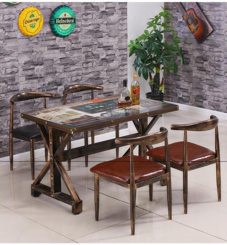 Western Restaurant Snack Shop Table and Chair Combined with four-person rectangular rectangular chair features antique