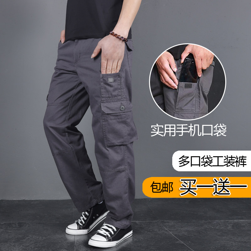Spring and autumn new multi-pocket overalls men's trousers trend loose straight large size casual tactical pants four seasons