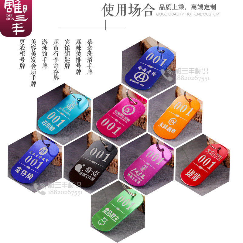 Customized hotel luggage storage aluminum alloy keys listed number number digital deposit card bath center hand
