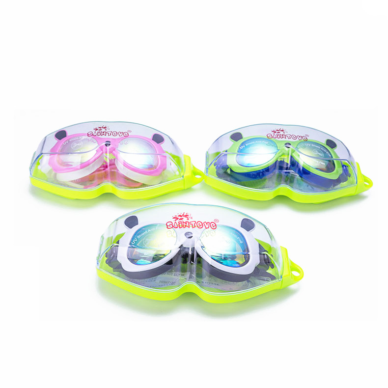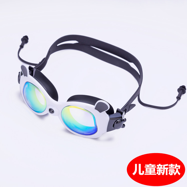 Panda styling swimming goggles boys professional waterproof anti-fog swimming glasses girls HD transparent large frame set equipment