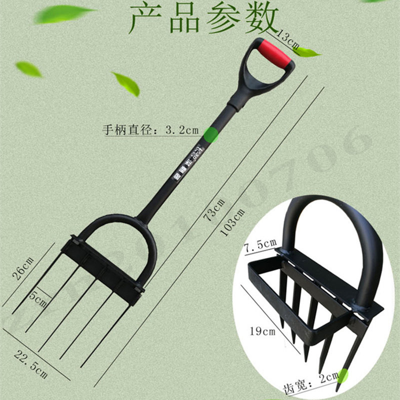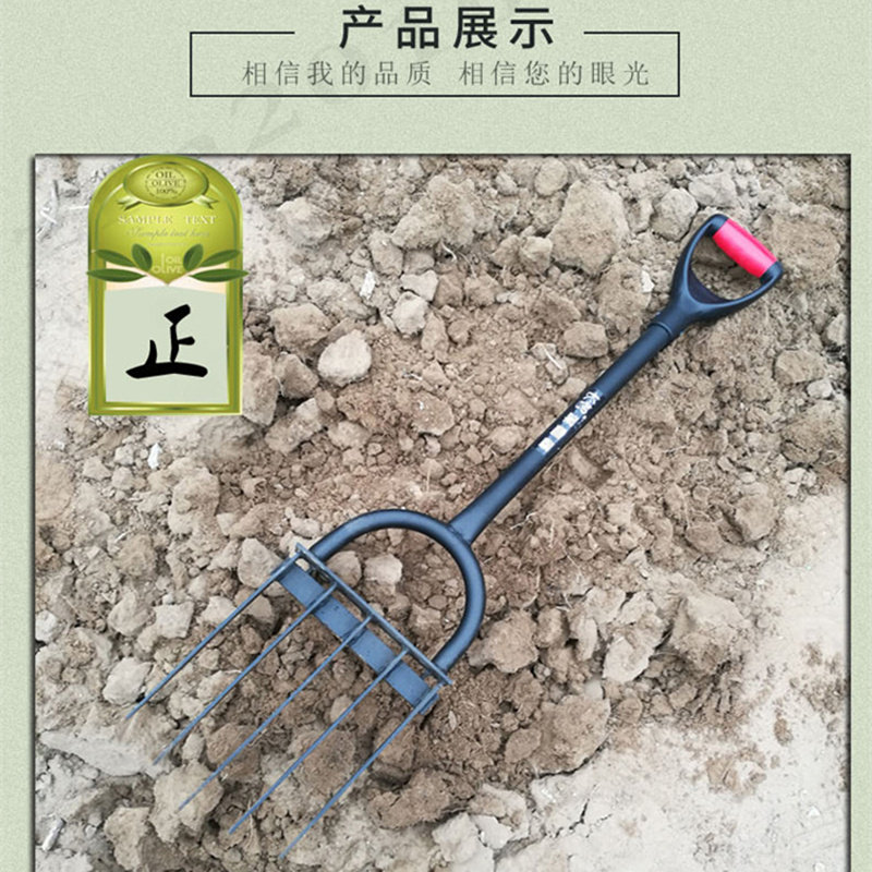 Five Teeth Deep Turning Fork Manganese Steel Agricultural Turtground Pine Earth Artificial Capillatine Flat Teeth Domestic Thickened Large Steel Fork