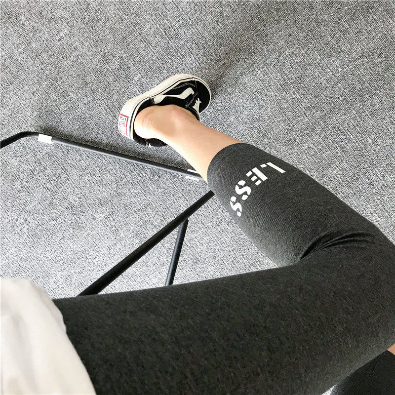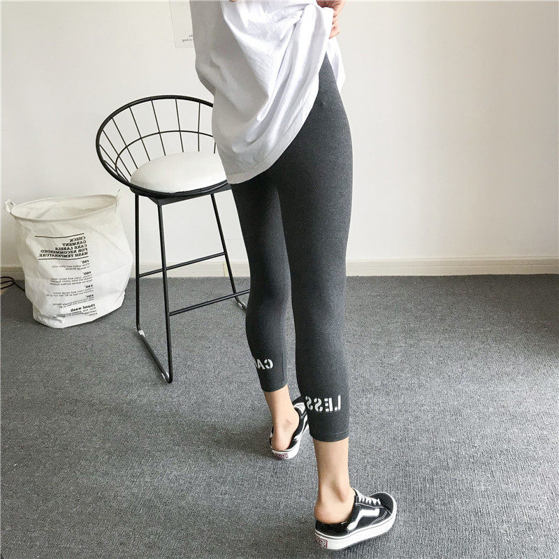 Korean version of spring and summer thin section wear pure cotton high waist eight-point tight leggings women's letters sports leisure small man