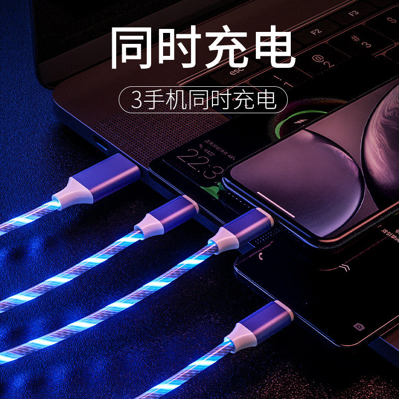 One-to-three Apple streamer data cable suitable for oppo charging cable fast charging Android Douyin same type-c Huawei vivo mobile phone luminous three-in-one universal multi-head marquee magic glow