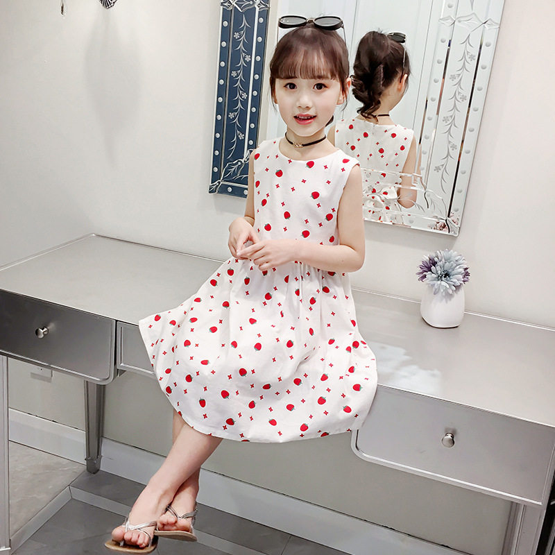 Girls dress 2022 summer new children's clothing Western style Korean print skirt little girl cotton princess skirt
