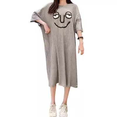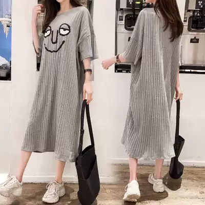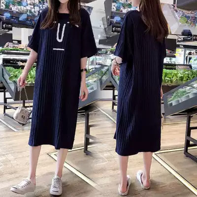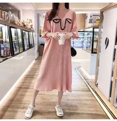 Summer Korean version plus size maternity dress plus fat mid-length dress Fat MM pure cotton over-the-knee skirt 200 bottoming shirt