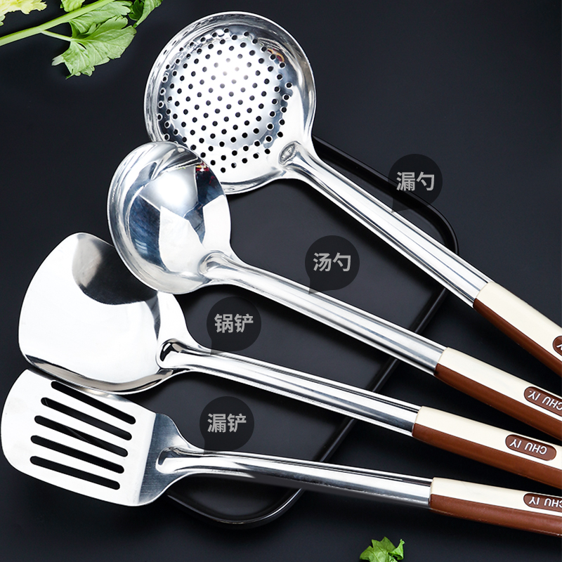 Home Stainless Steel Shovel Spoon Suit Thickened Cookware Leaking Spoon Soup Spoon Kitchen Anti-Burn Insulation Shovel Spoonful Saute Pan Shovel