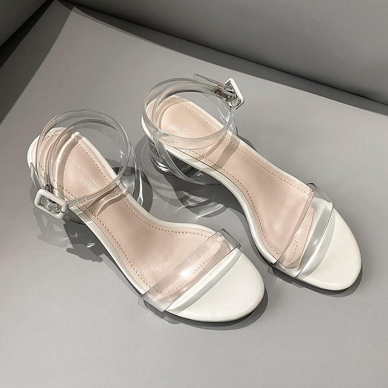 2021 summer new seaside vacation thick with transparent crystal sandals women wild Net red fairy wind with sandals