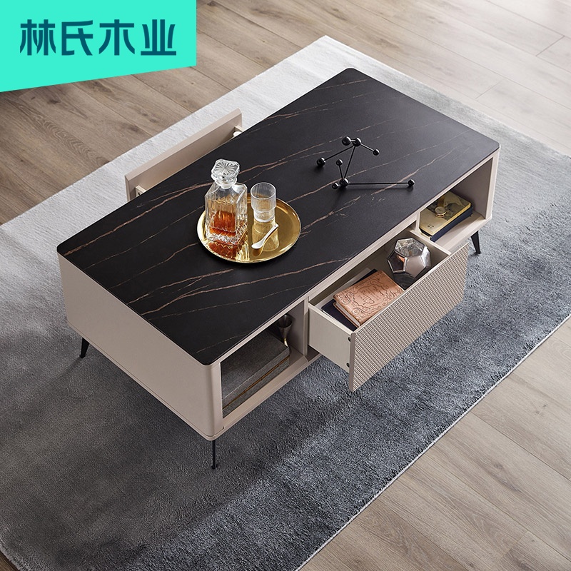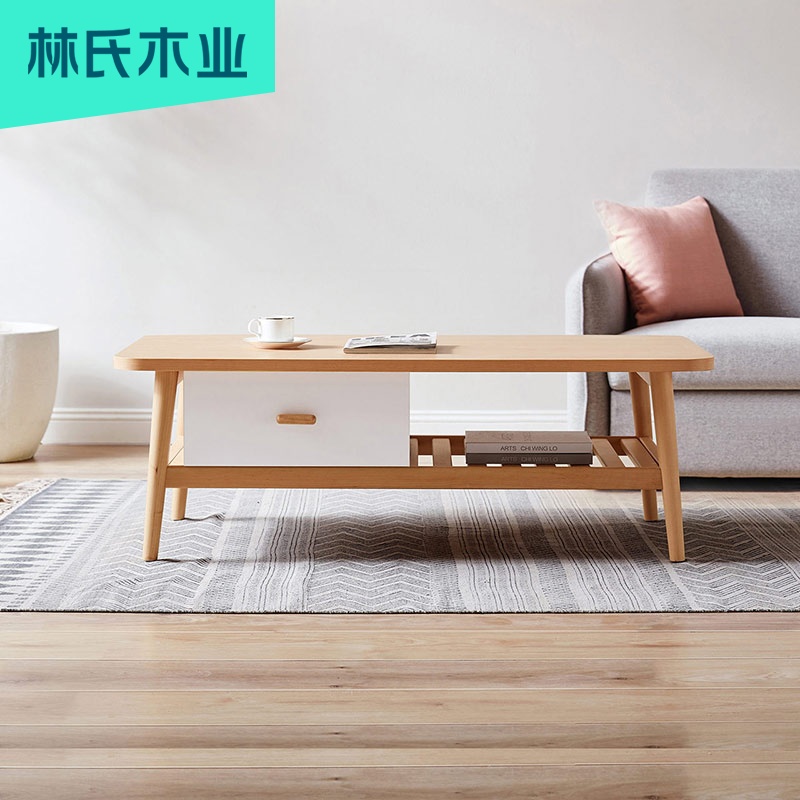 Lin's wood industry Nordic simple solid wood tea table table Home original wood color small family style living room tea table furniture JN1L