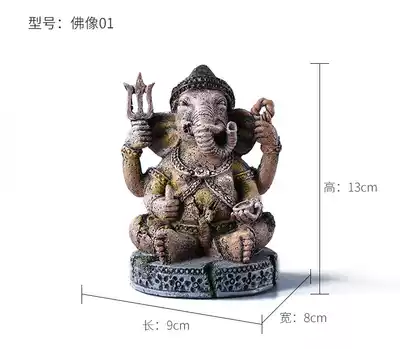 Fish tank landscaping simulation Ancient Buddha statue Aquarium decoration animal ornaments Landscaping simulation elephant God sitting statue Relief statue