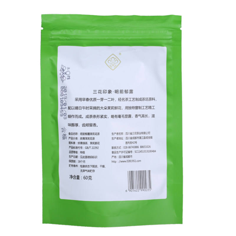 Sanhua tea Mingqian Yulu 60g bag Super-flavored jasmine tea Sichuan super-grade Emeishan tea