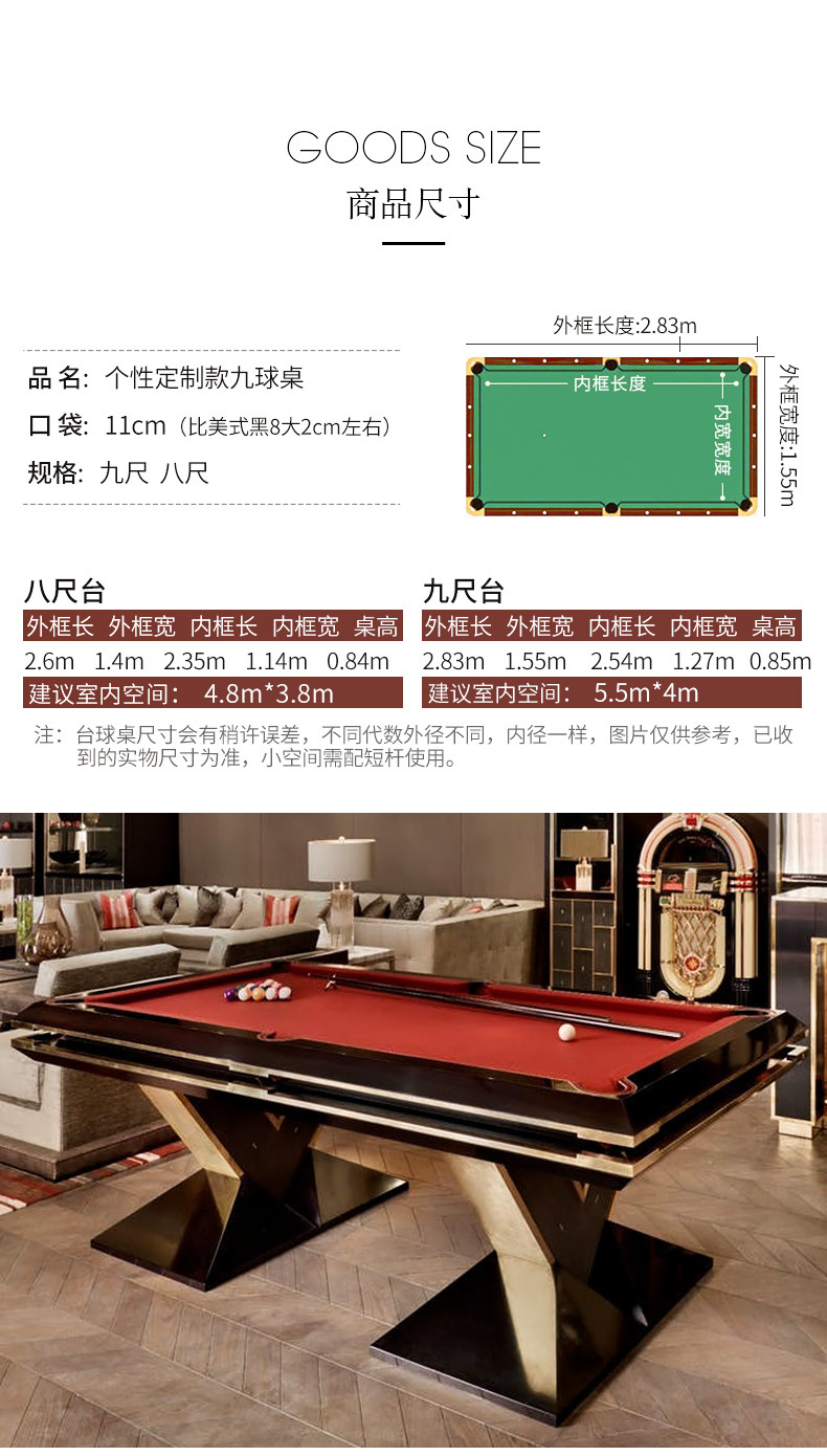 Villa standard adult home custom carved billiard table custom fancy nine-ball American black eight billiard table