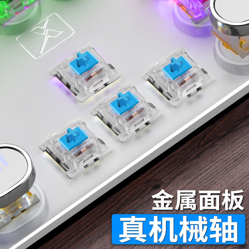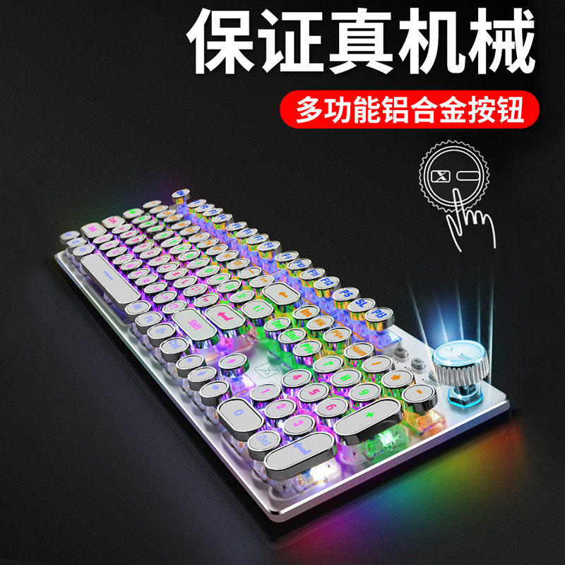 New Alliance Steam Punk Round Key Real Mechanical Keyboard Game Green Shaft Tea Black Shaft 104 Key Retro Eating Chicken Notebook Online Cafe Cable Takeaway Desktop Computer Office Manbar Snake Net Red