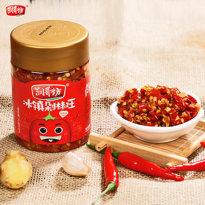 Rungefang Iced Chopped Pepper Wang Meng Special Spicy 228g Hunan Specialty Handmade Garlic Oil-Free Chopped Chili Sauce for Meals
