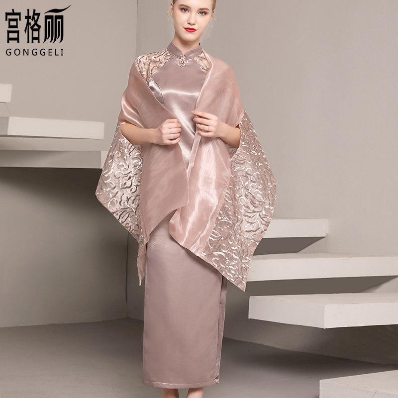 The new mother dresses the cheongsam short wedding banquet Mother hosts the annual meeting evening dress young mother-in-law noble slim body