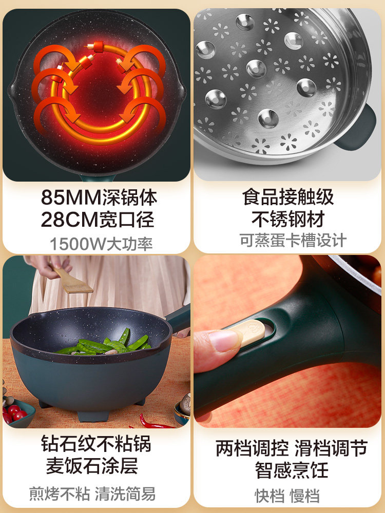 Supor electric frying pan multi-function cooking dormitory quick-cooking pot household Maifan stone one-piece JD28D813