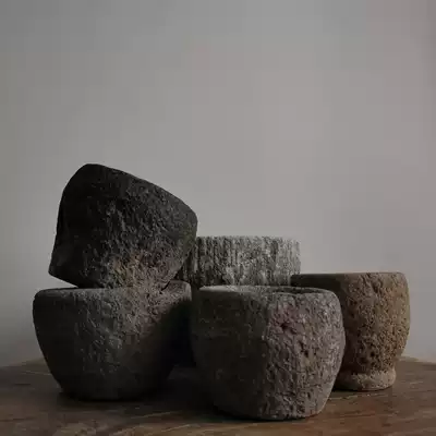 The collection of stone mortar and stone tools, old ornaments, garlic mortar, Wagi Ji Feng Hotel, B & B decoration props, stone flower decoration