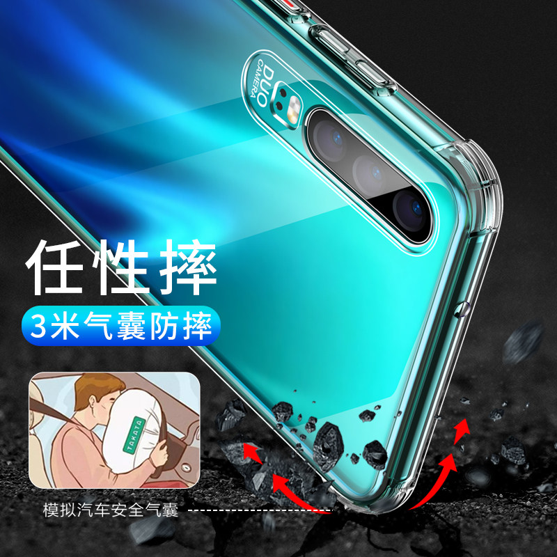 Suitable for Huawei P30 mobile phone case p30pro transparent silicone protective cover P30 airbag anti-fall all-inclusive men's and women's shell soft new personality creative net red protective shell tide