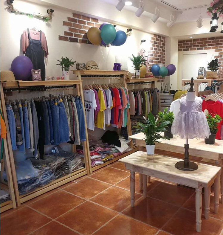 Clothing store hanger display rack flow table shelf solid wood display table high and low Taichung island rack shoe bag mother and baby shop