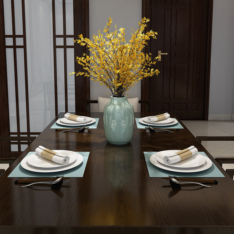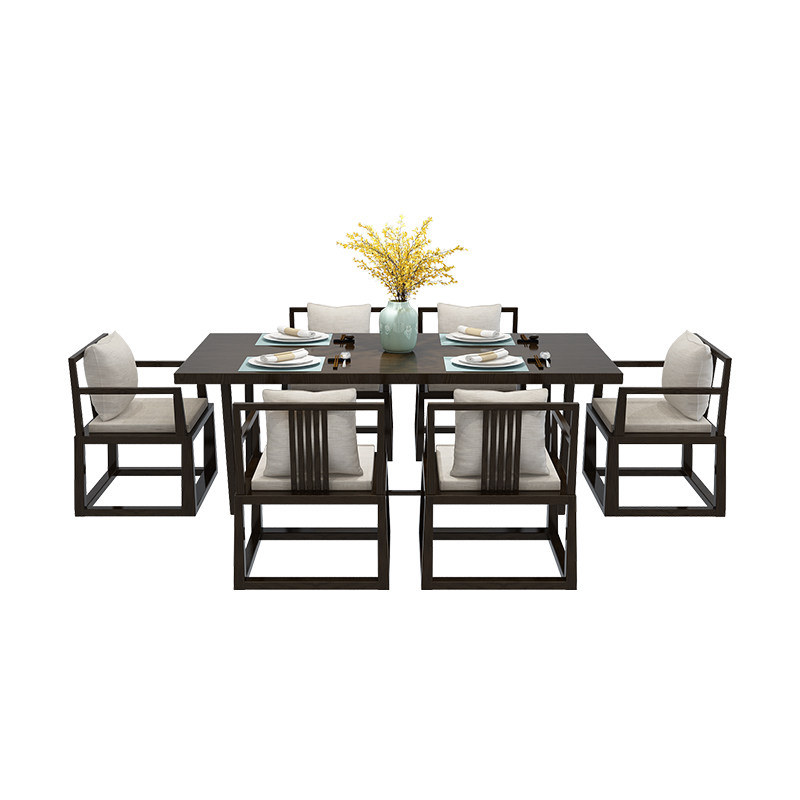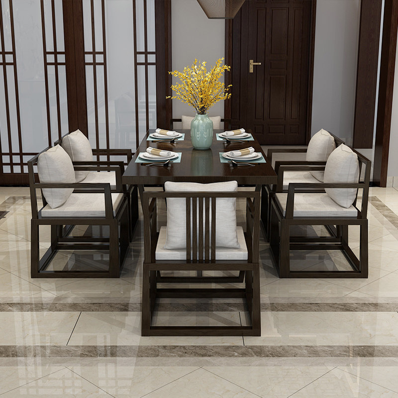New Chinese Solid Wood Dining Table and Chair Combination Modern Chinese Rectangular Dining Table 4-6 Small Family Zen Furniture
