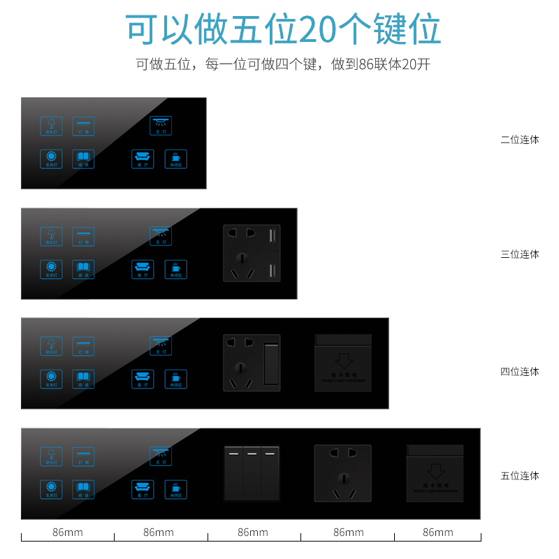 min famous residence intelligent 86 type hotel bedside touch conjoined combination switch hotel room multi-control panel