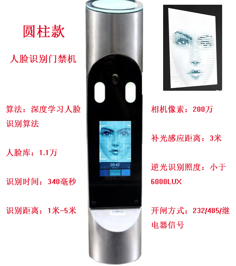 Cylindrical New Face Recognition Exam Attendance Machine Facial Beating Card Machine Community Brush Face Access Control System All Door Opener