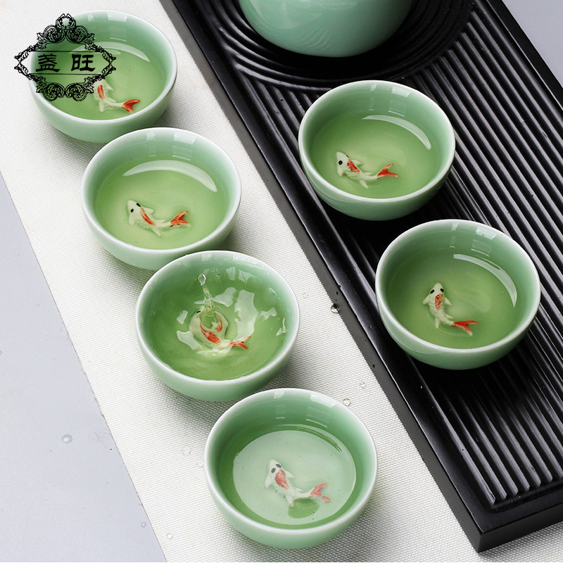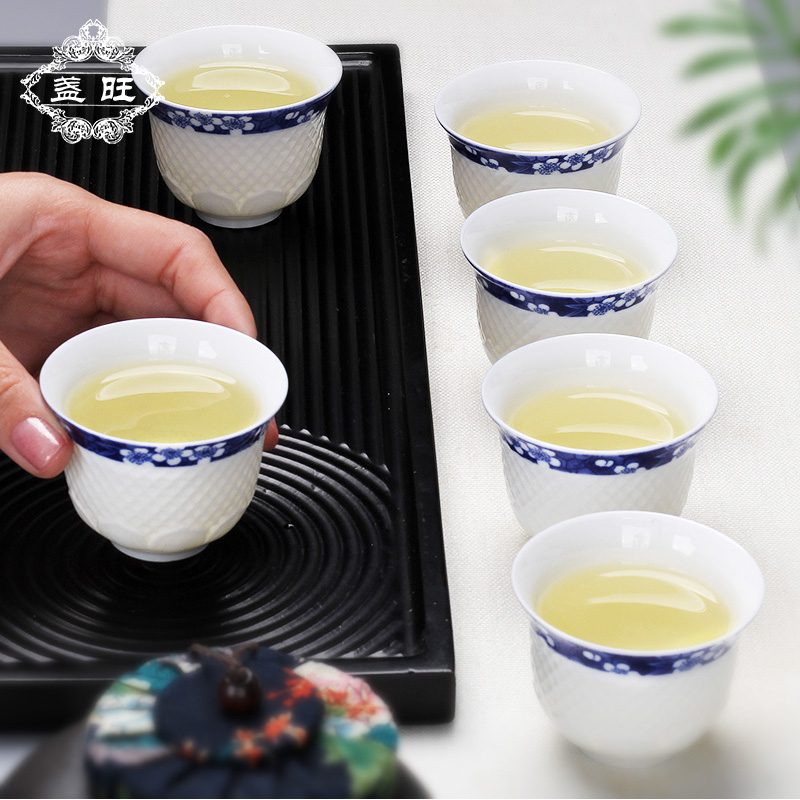 Qigfu Tea Cup-Relief Dragon -6 Loaded Kung Fu Tea Cups-Blue Mountain Water -6 Loaded Kung Fu Tea Cups-Rich peony -6 Loaded Kung Fu Tea Cups-Water Points Peach Blossom -6 Loaded Purple Sand Tea Cups -6 GREEN PORCELAIN