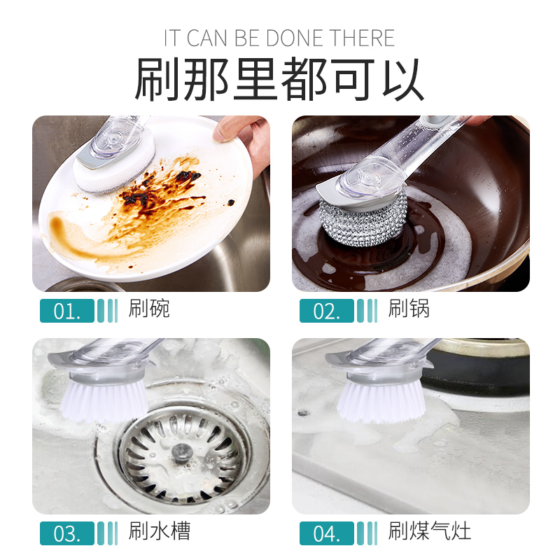 Long handle brush pot artifact Descaling oil household washing pot brush Kitchen automatic liquid cleaning brush brush bowl sponge brush