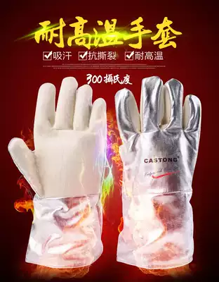Caston aluminum foil high temperature resistant gloves 300400 degree heat insulation fire fire industrial thickening