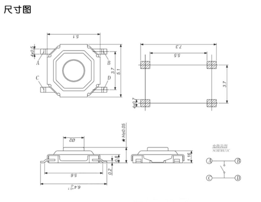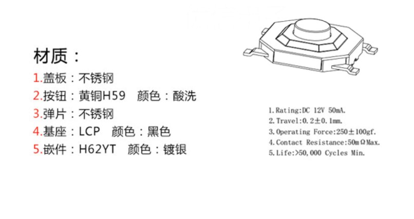 (20) waterproof copper head patch light switch 4 * 4 * 1 5MM LCD headphone micro-press key