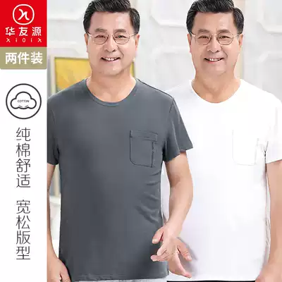 Middle-aged and elderly men's summer short-sleeved T-shirt old man dad pure cotton loose large size pajamas plus thin home clothes