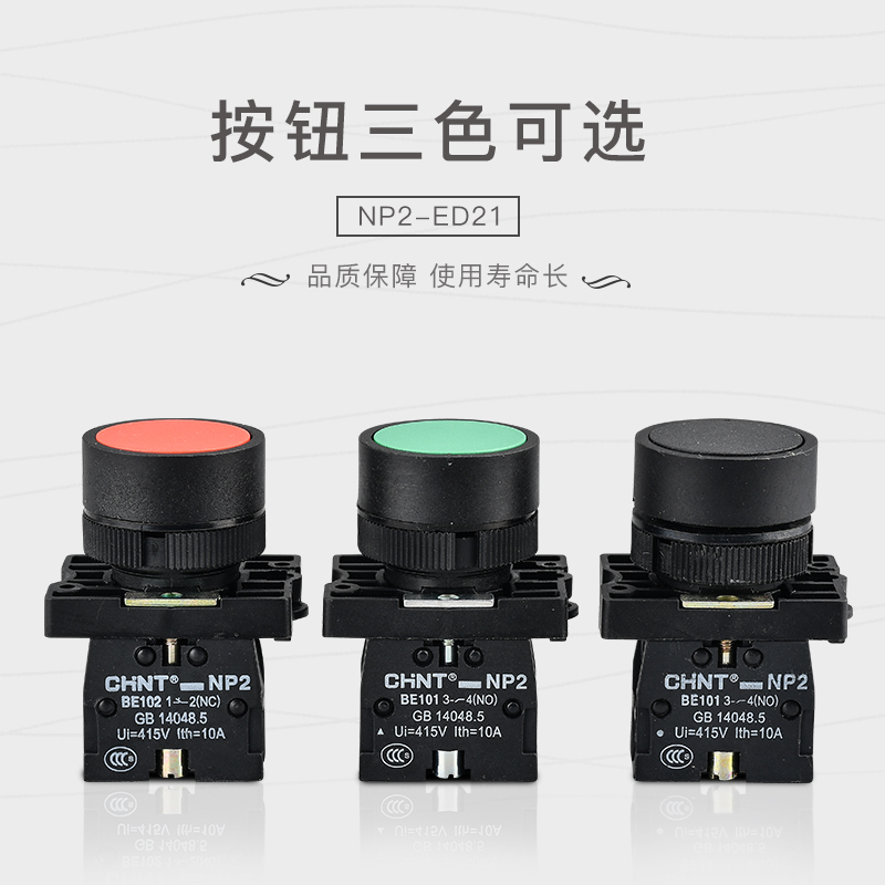 Zhengtai self-reset flat button Metal head button switch NP2 aperture 22mm