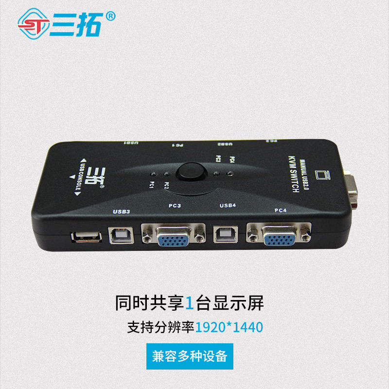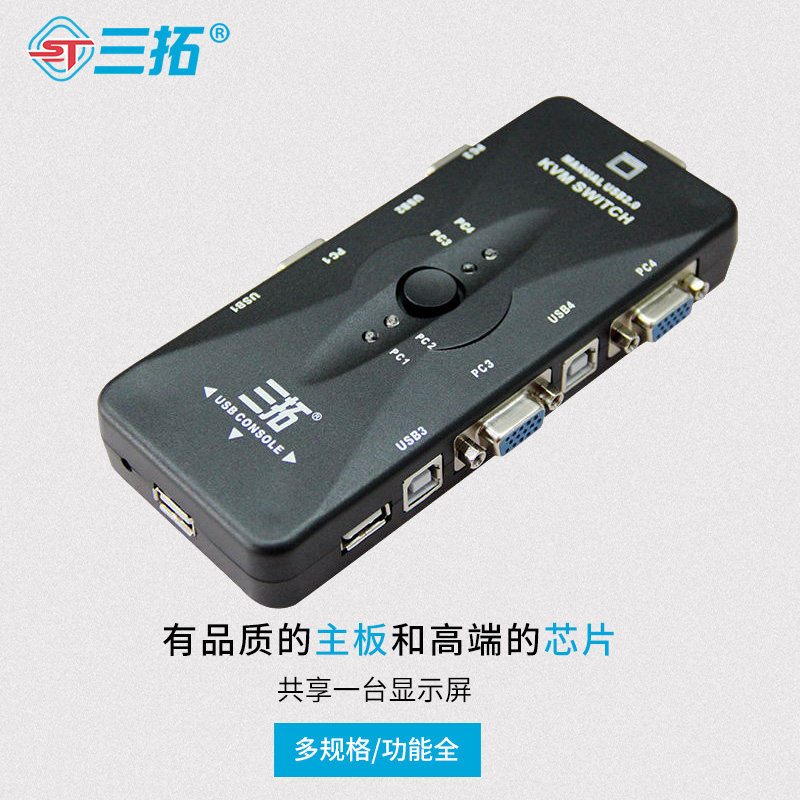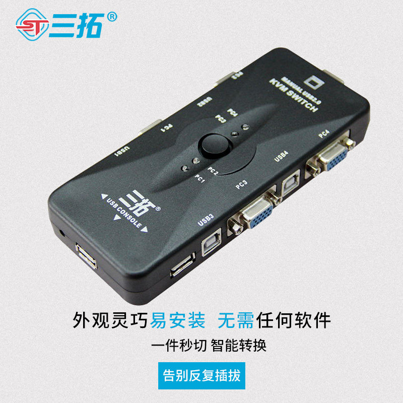 Triple-tutor kvm switcher 4-mouth VGA four-in-out USB multi-computer host display Mouse Keyboard Shareware Mouse key screen Co-shareware wiring 617 Remote control