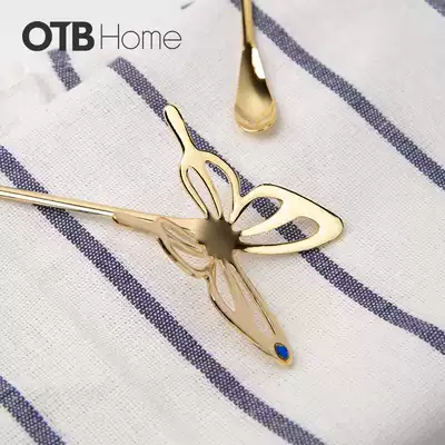 OTB butterfly coffee spoon mixing rod can hang creative cute little spoon dessert spoon Japanese golden mini Net Red