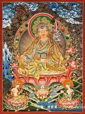 Black gold Lotus Master Nepal pure hand-painted handmade Tibetan tantric tantric thangka hanging painter