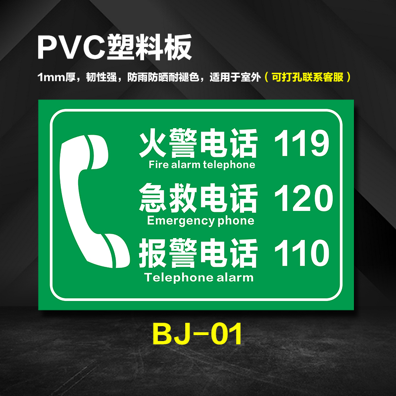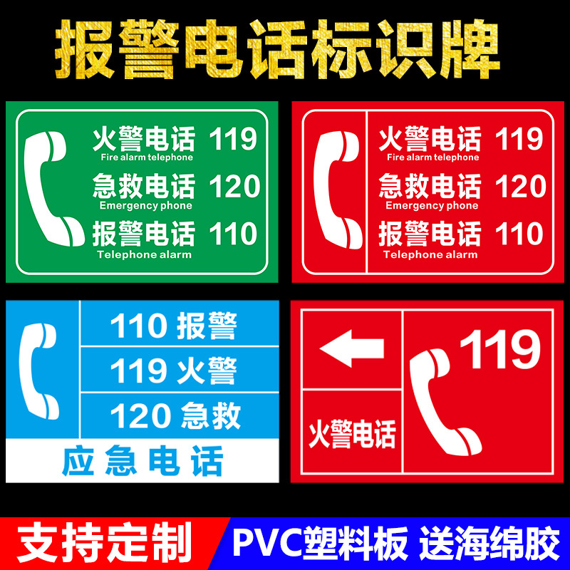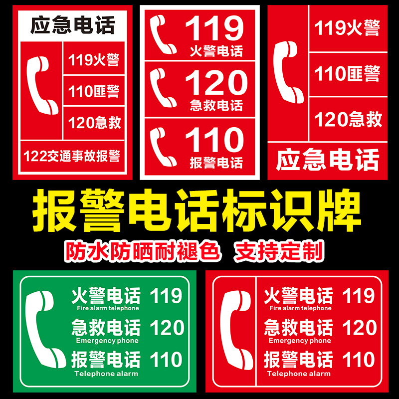 Fire Emergency Phone ID Card Fire Phone 119 First Aid Phone 120 Alarm Phone 110 Emergency Phone Forest Fire Flag Reminder Signs Pvc Plate Customised