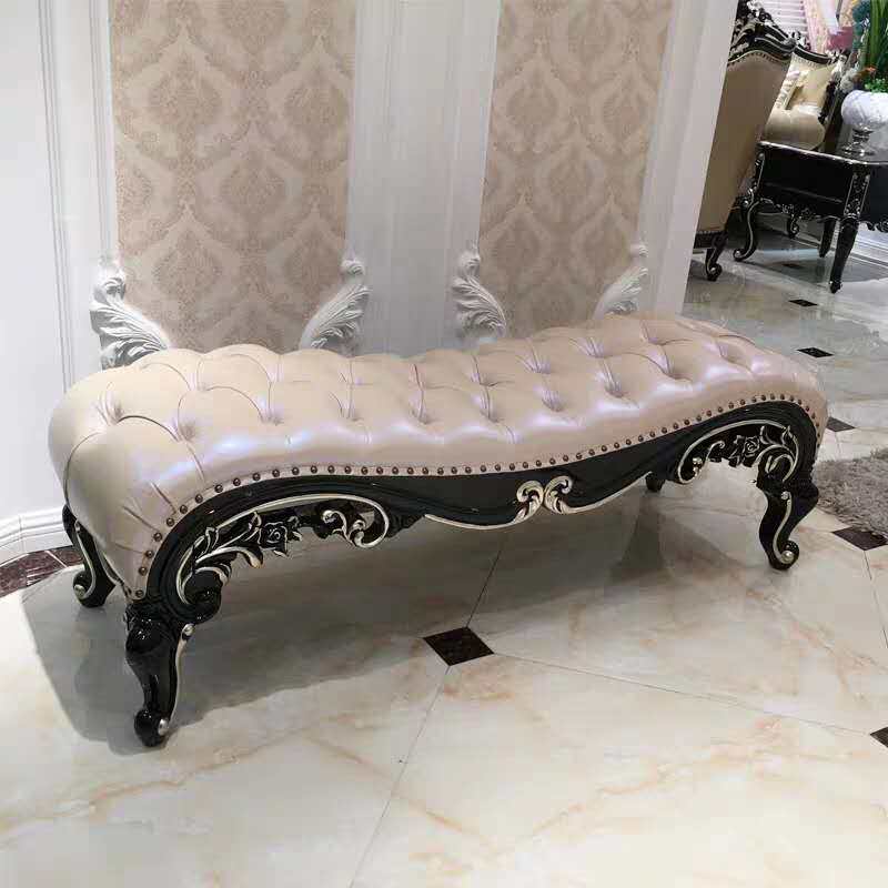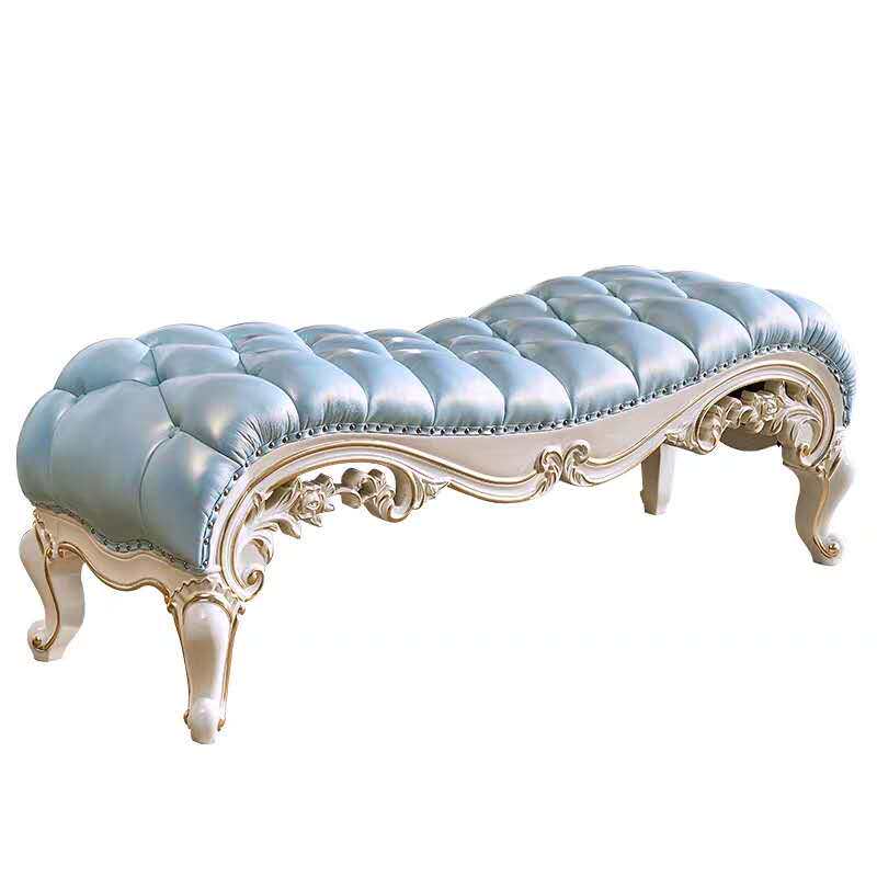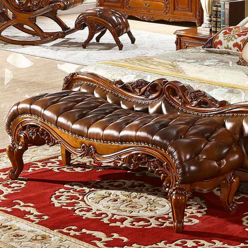 European-style bed end stool solid wood carved small sofa bed front American leather shoe-changing stool bedroom high-end luxury bench