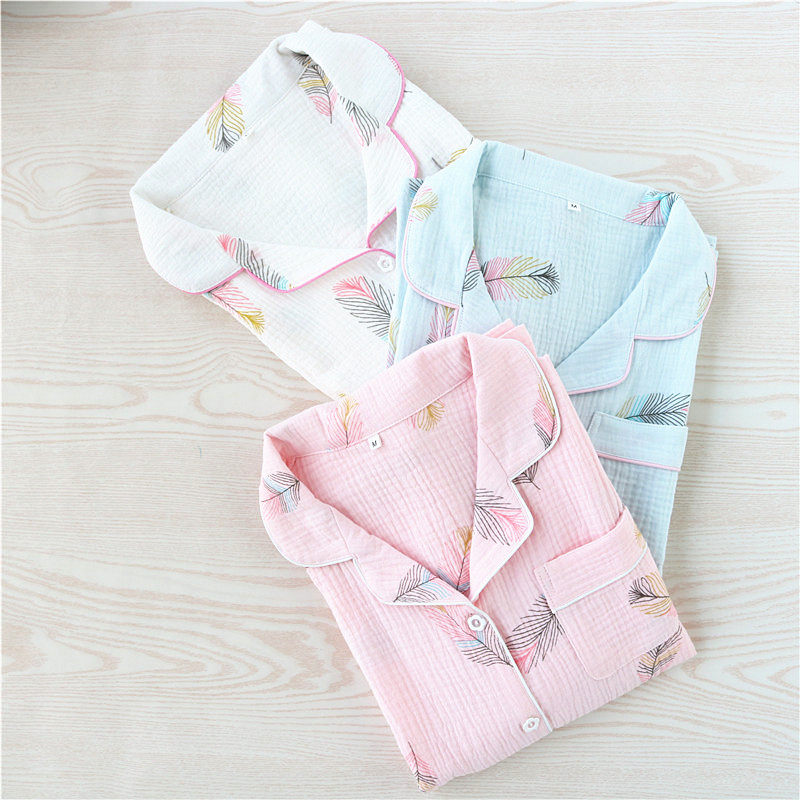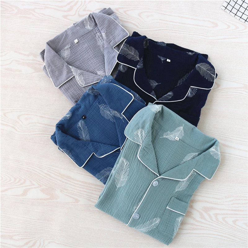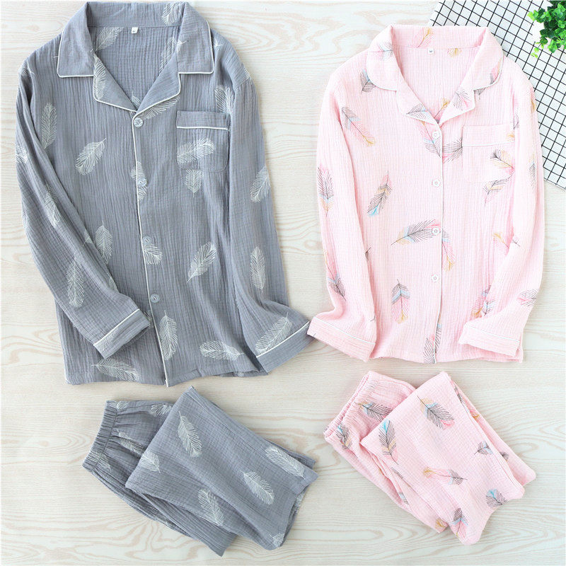 Couple pajamas summer two-piece Japanese-style cotton gauze home service women's thin section men's long-sleeved trousers loose suit