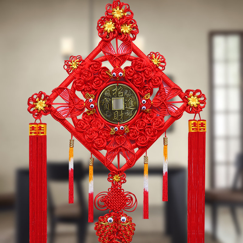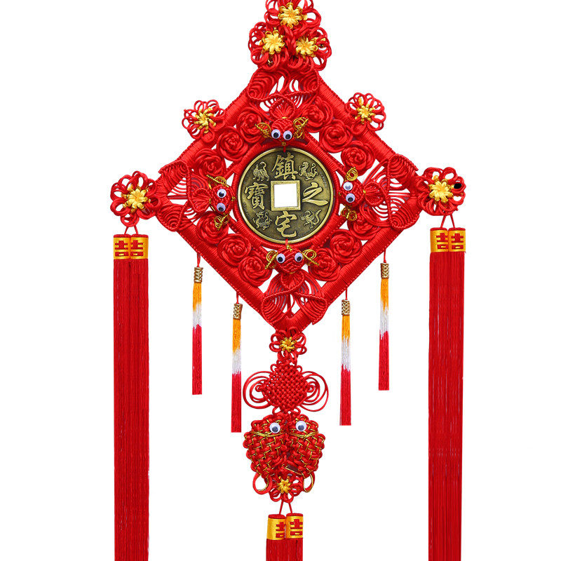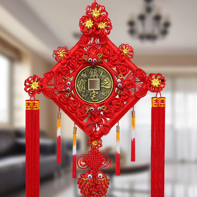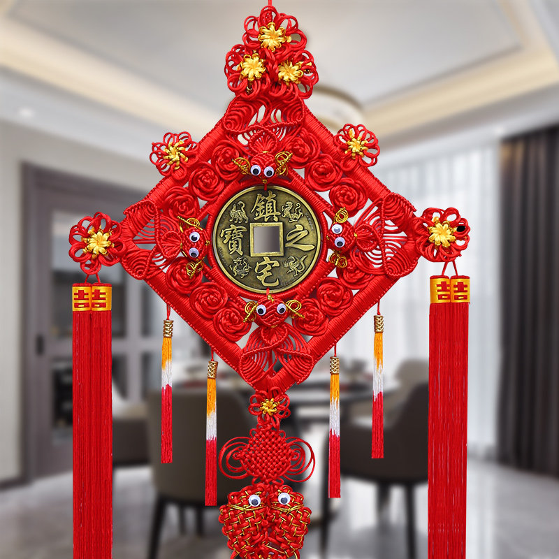 Chinese knot copper money pendant Living room large housewarming entrance aisle New house hanging decoration background wall Chinese Festival safe knot