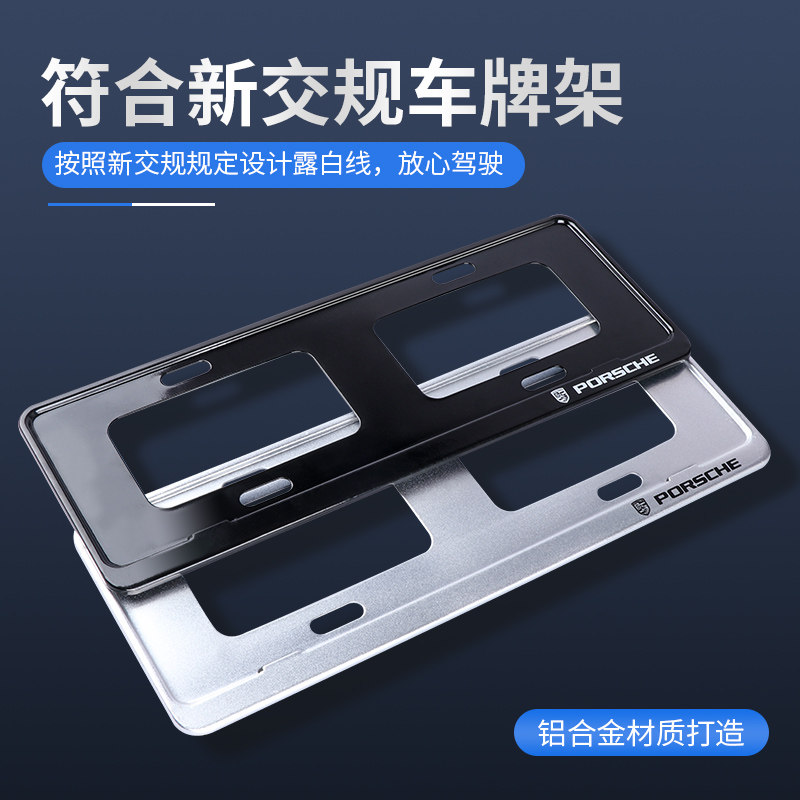 Conform to the new turnpass rules standard (new energy license plate beauty gauge version-not applicable) Porsche (aluminum alloy license plate frame-frosted silver) 1 set (send shock-proof cushion) Porsche (aluminum alloy license plate frame -