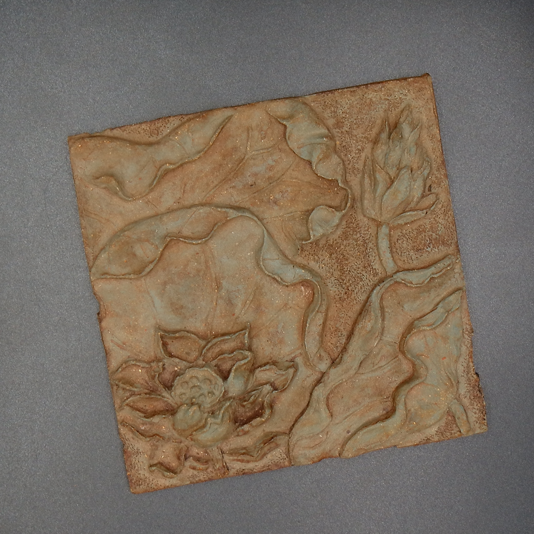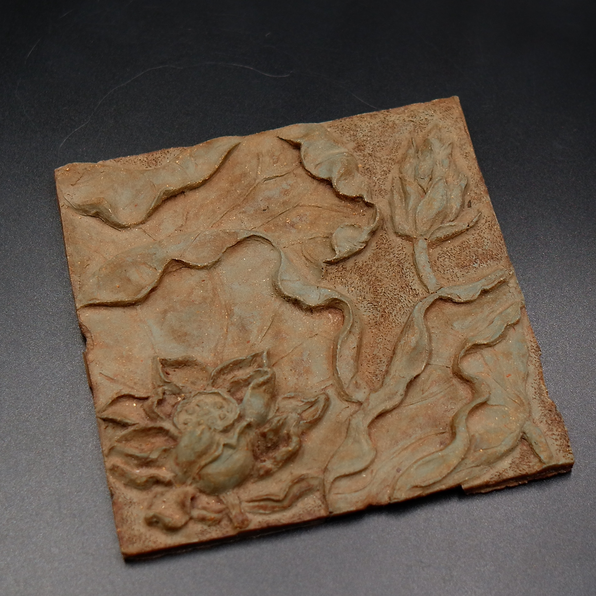 Su Xin era author unknown purple sand green clay lotus flower figure high relief plate collection