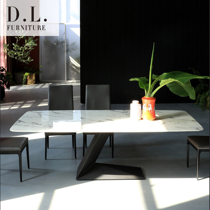 Nordic Industrial Dining Table and Chair Combination Modern Simple Minimal Creative Postmodern Iron Marble Dining Table Furniture