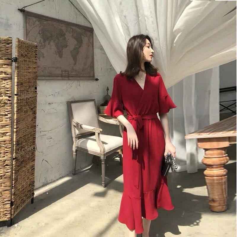 2022 new summer collection waist slim temperament pastoral style casual French gentle wind dress super fairy forest system