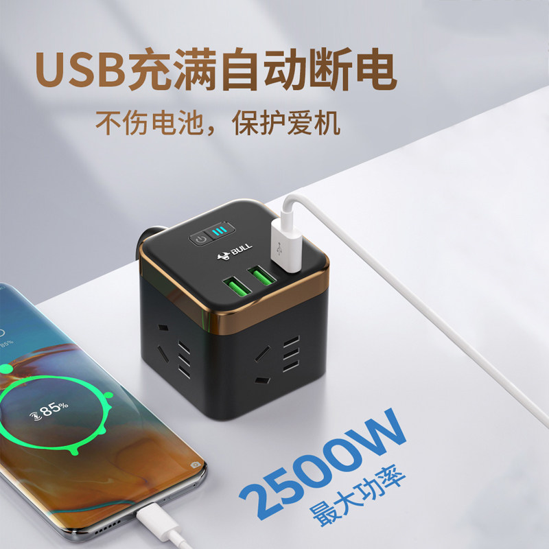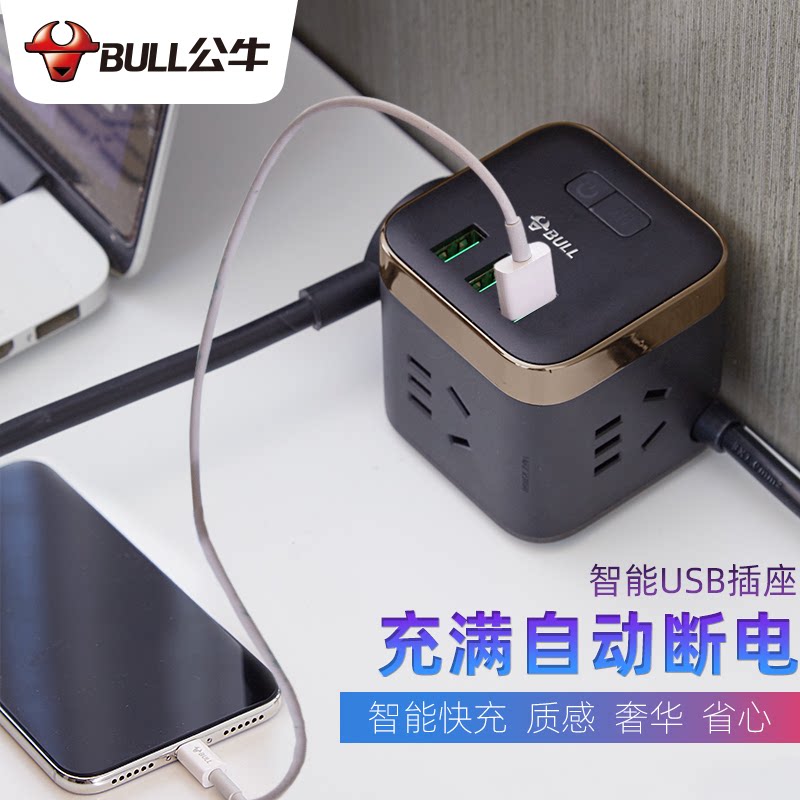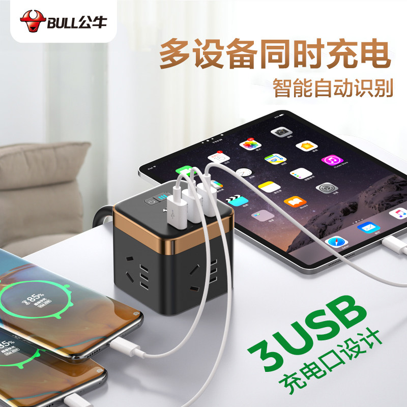 Bull Rubik's Cube usb Socket Anti-overcharge Mobile Phone Full of Auto-break Charger Flagship Authorized Multifunctional Plug-in