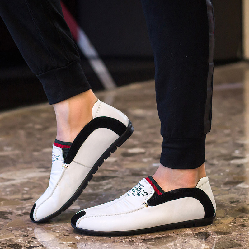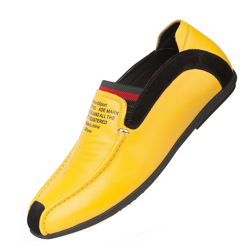 Summer youth men's casual toe top layer cowhide leather breathable soft bottom leather shoes cover feet low-top shoes driving shoes men
