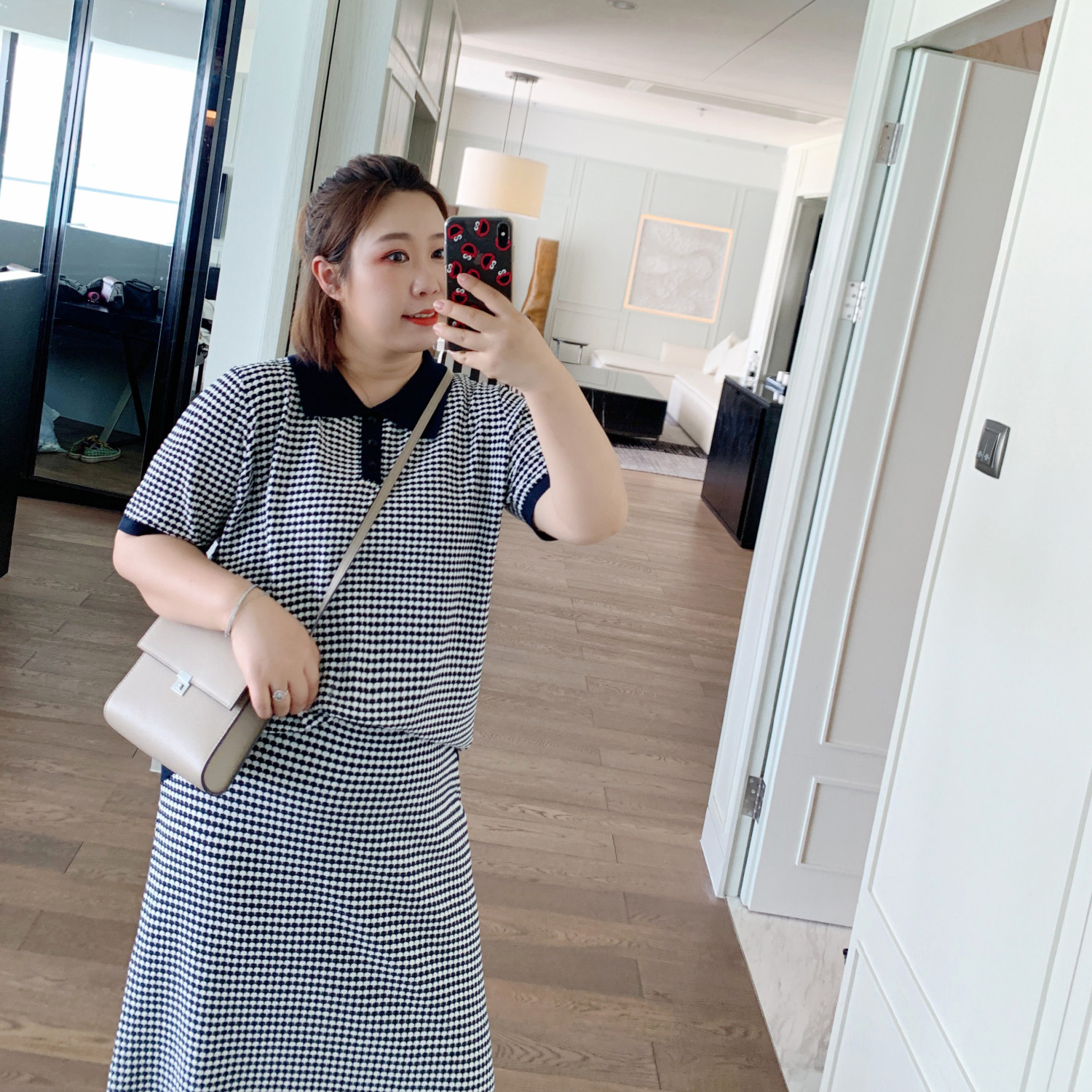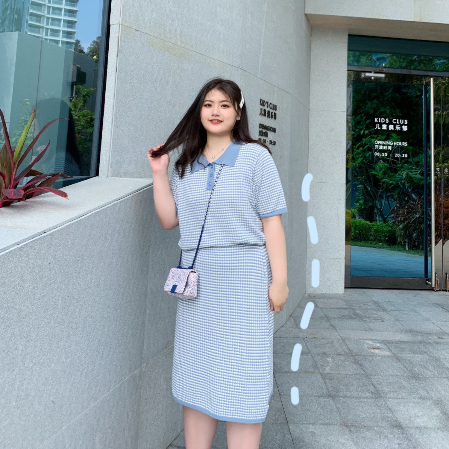 ALIN Custom large size women's clothing Knit Lattice Tattoo Suit Tightness Waist Loose Shade Fat Mm Suit Reduction