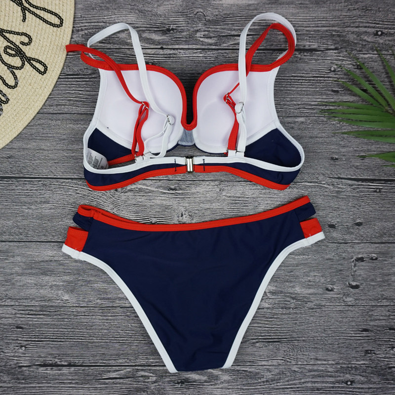 Sport Fashion Two-style Triangle Sexy European and American Steel Two-piece Korean Version Model High Fork Bikini Female Swimsuit Swimsuit