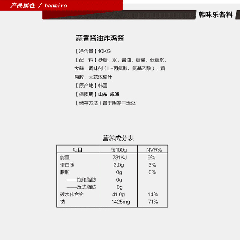 Han Taste Le Garlic Soy Sauce Fried Chicken Sauce 10kg Han Style Fried Chicken Sauce Garlic Sauce Fried Chicken Sauce Korean Dining Hall Commercial
