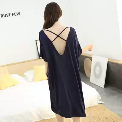 Plus hypertrophic size night dress women's summer loose sexy backless fat MM 200 kg thin modal pajamas home clothes