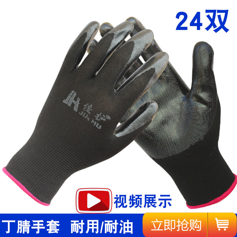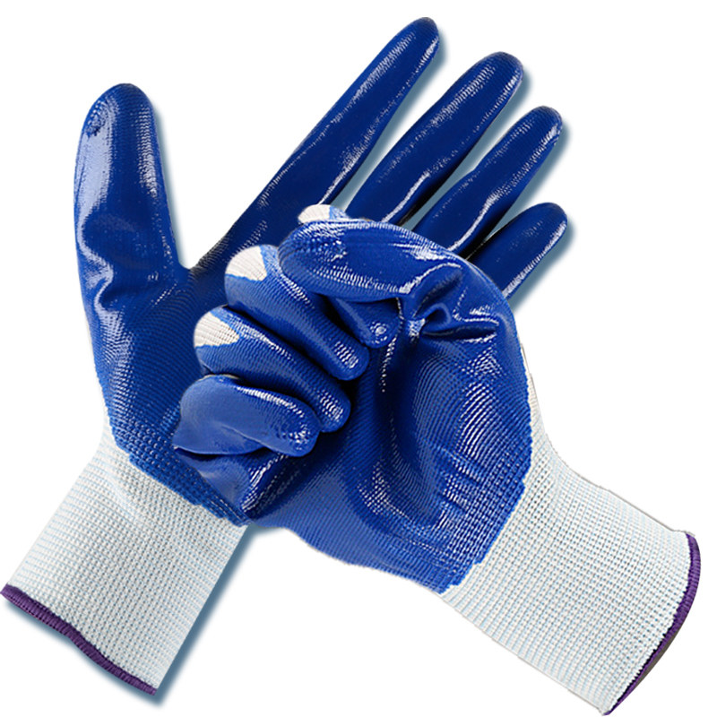 Good protection nitrile gloves Labor protection Ding Qing dipped rubber semi-hanging rubber site wear-resistant waterproof breathable work non-slip gloves